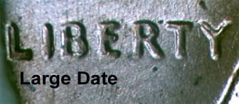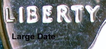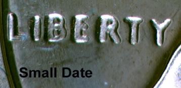 A third way to tell the difference is by looking at the word LIBERTY. In the small date the word LIBERTY is weak, especially the top of the E and Y. In the large date the word LIBERTY is struck well with no letters blending into the field.